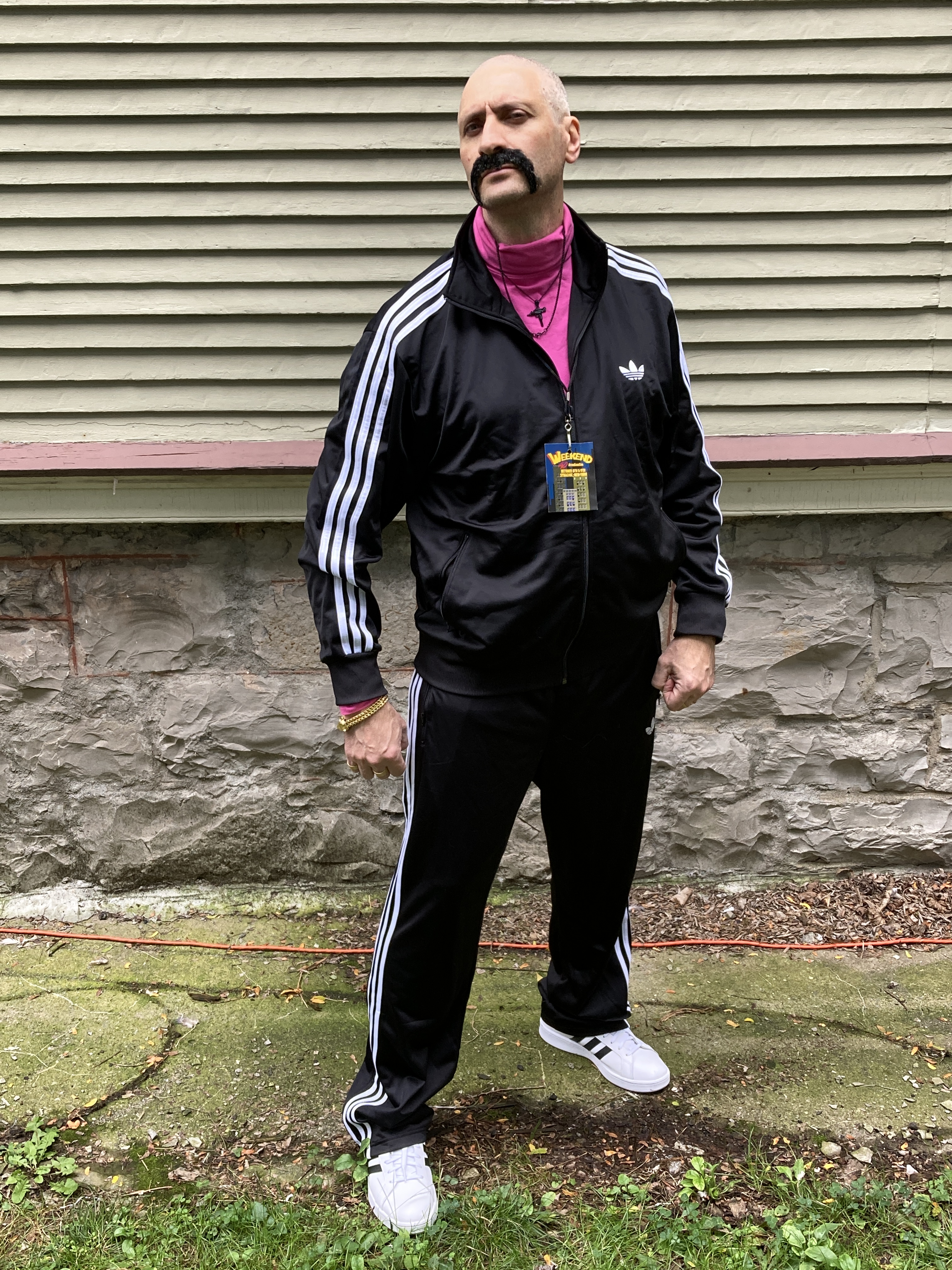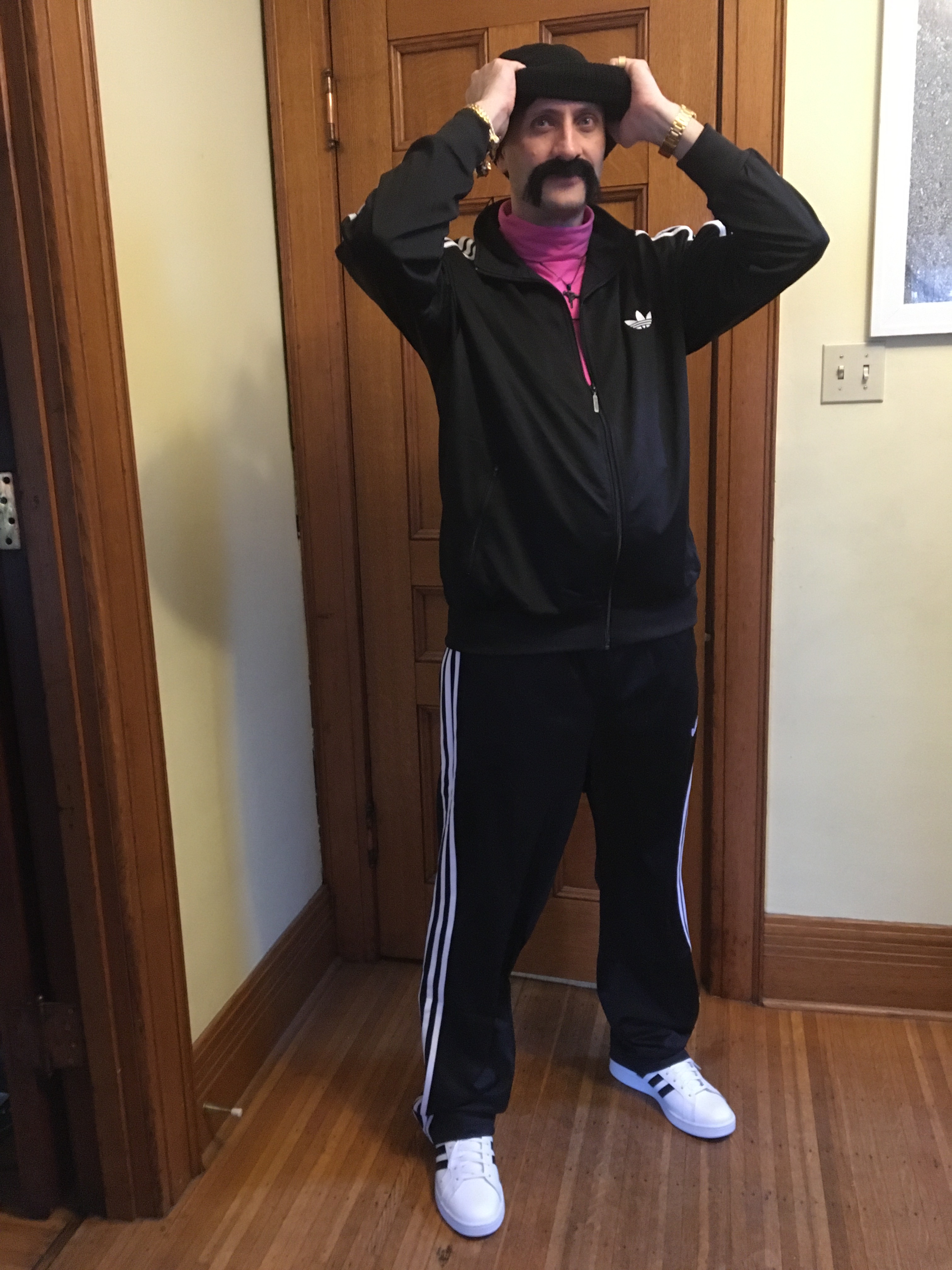 But in the end, bro? Finding the exact right sneakers and tracksuit, and some glam gold watches and bracelets, not to mention a futzing mustache that is just what this bro needed?