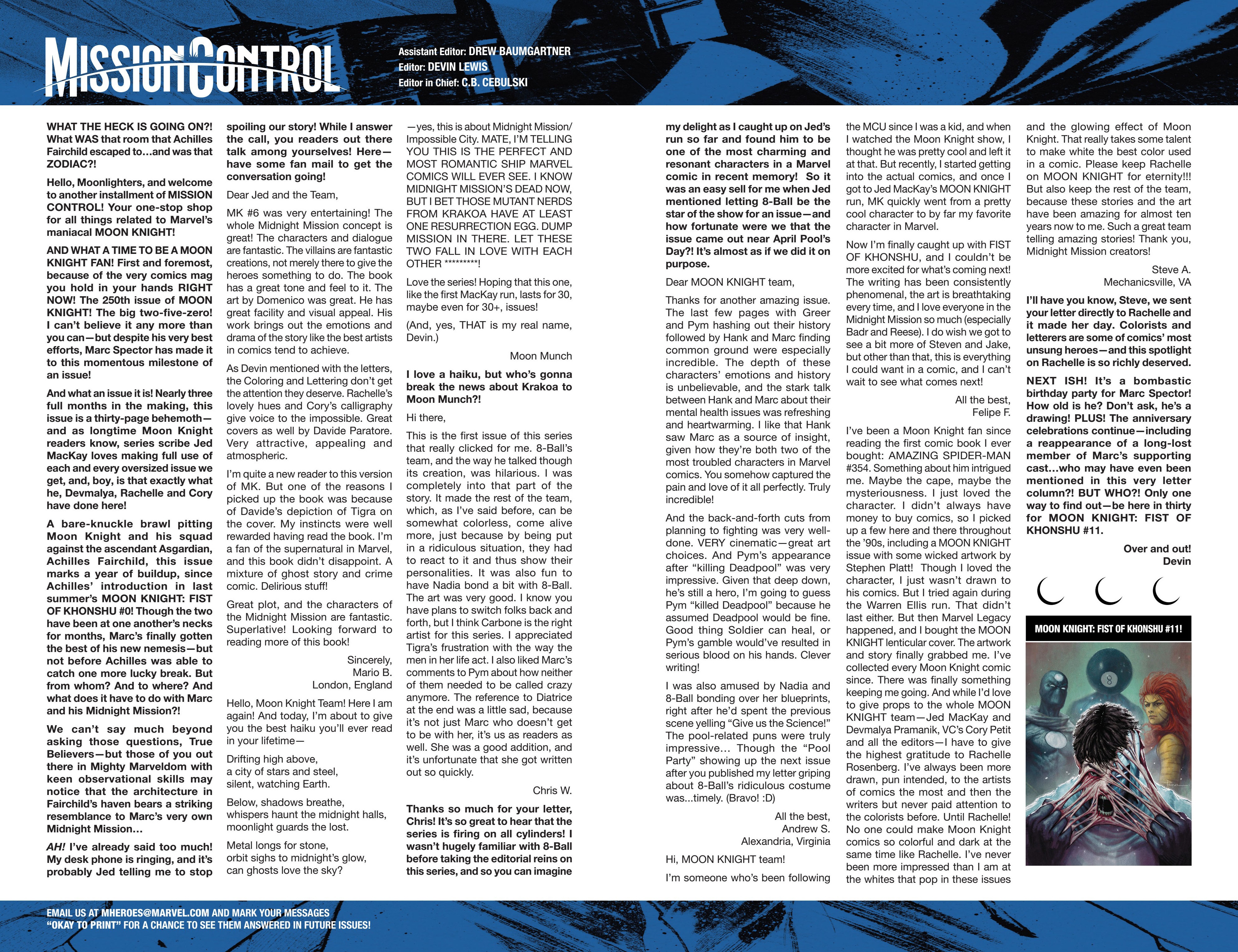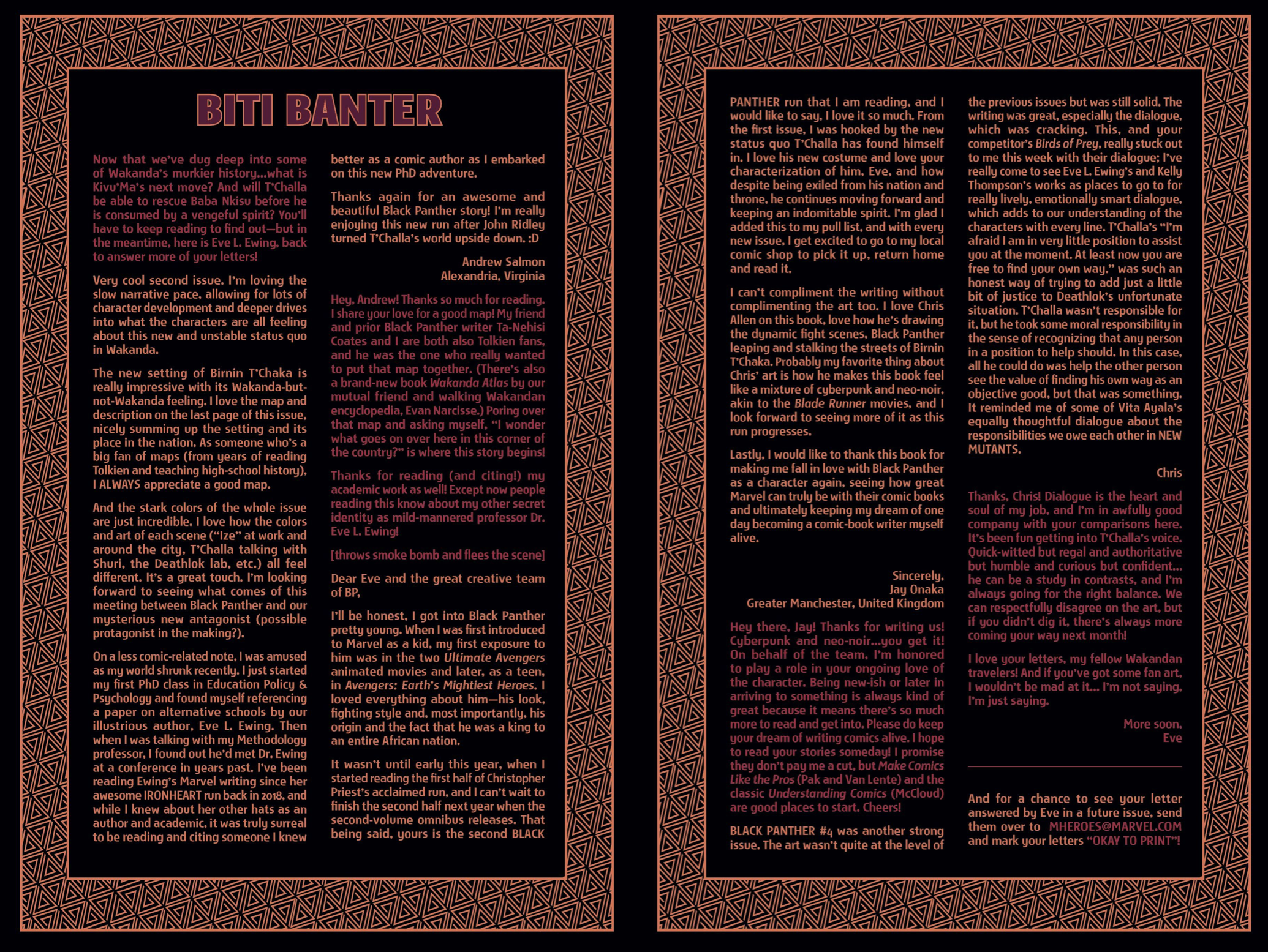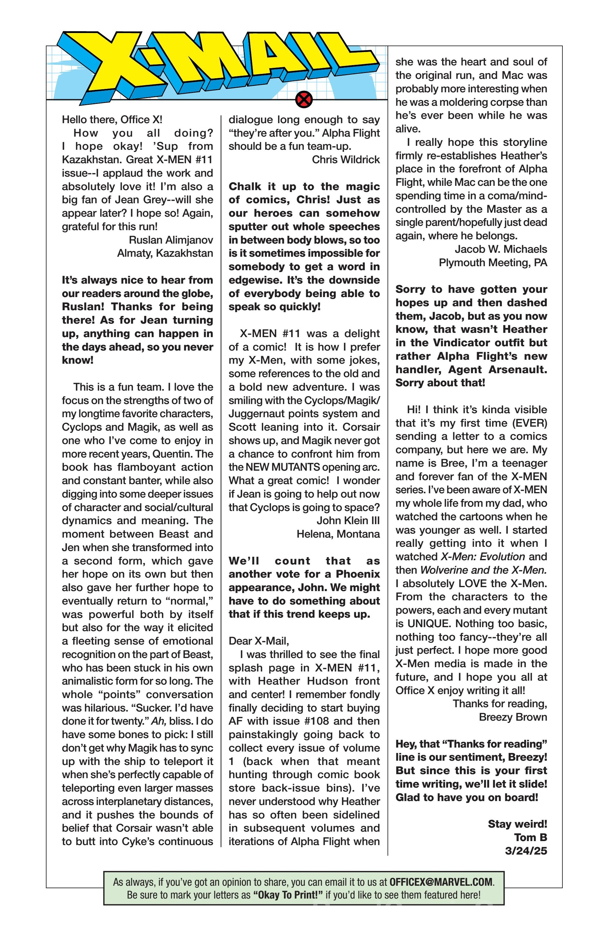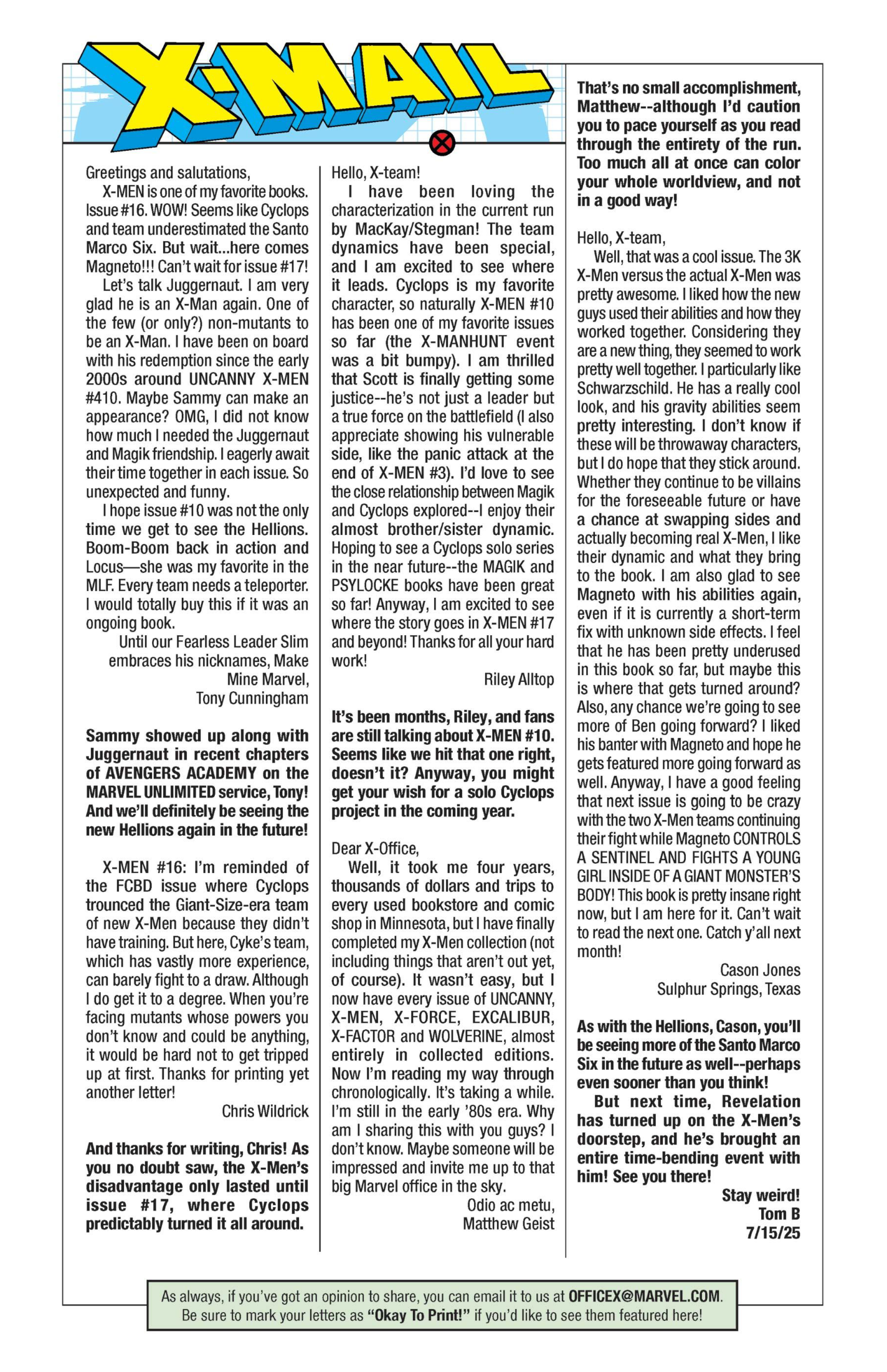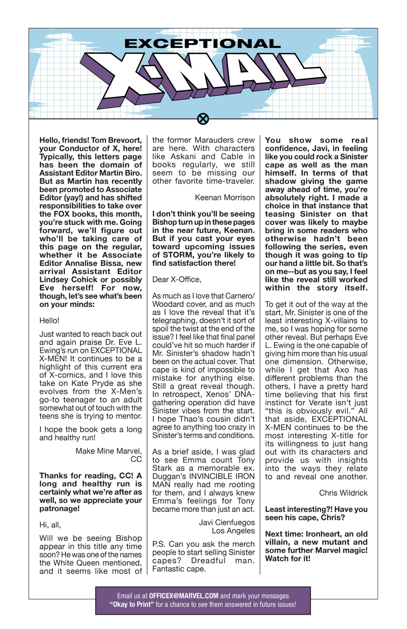 Another non-published letter was due to the timing…in the sense that I wrote it five years too late. In 2024, I wrote to The Wicked + The Divine after reading several issues I found in a dollar bin. The only challenge here is that the series ended in 2019. The WicDiv lettercol was an intrinsic part of the book, with writer Kieron Gillen making various running jokes, such as creating bespoke “ok to print” acknowledgement lines for each issue, and always replying to a prolific letterhack, Cam, with the same friendly “Thanks, Cam” response. I felt like there is no reason a letter column, especially one with an email, should be anchored in time to just when the comic is actually being produced. We still have opinions and responses to comics, no matter how long ago they were published, so I decided to just write in–and I got an almost instant response from Gillen saying, “This was all really touching, Chris. Thanks for doing it.” So props to Kieron Gillen for confirming that lettercols are eternal and atemporal!