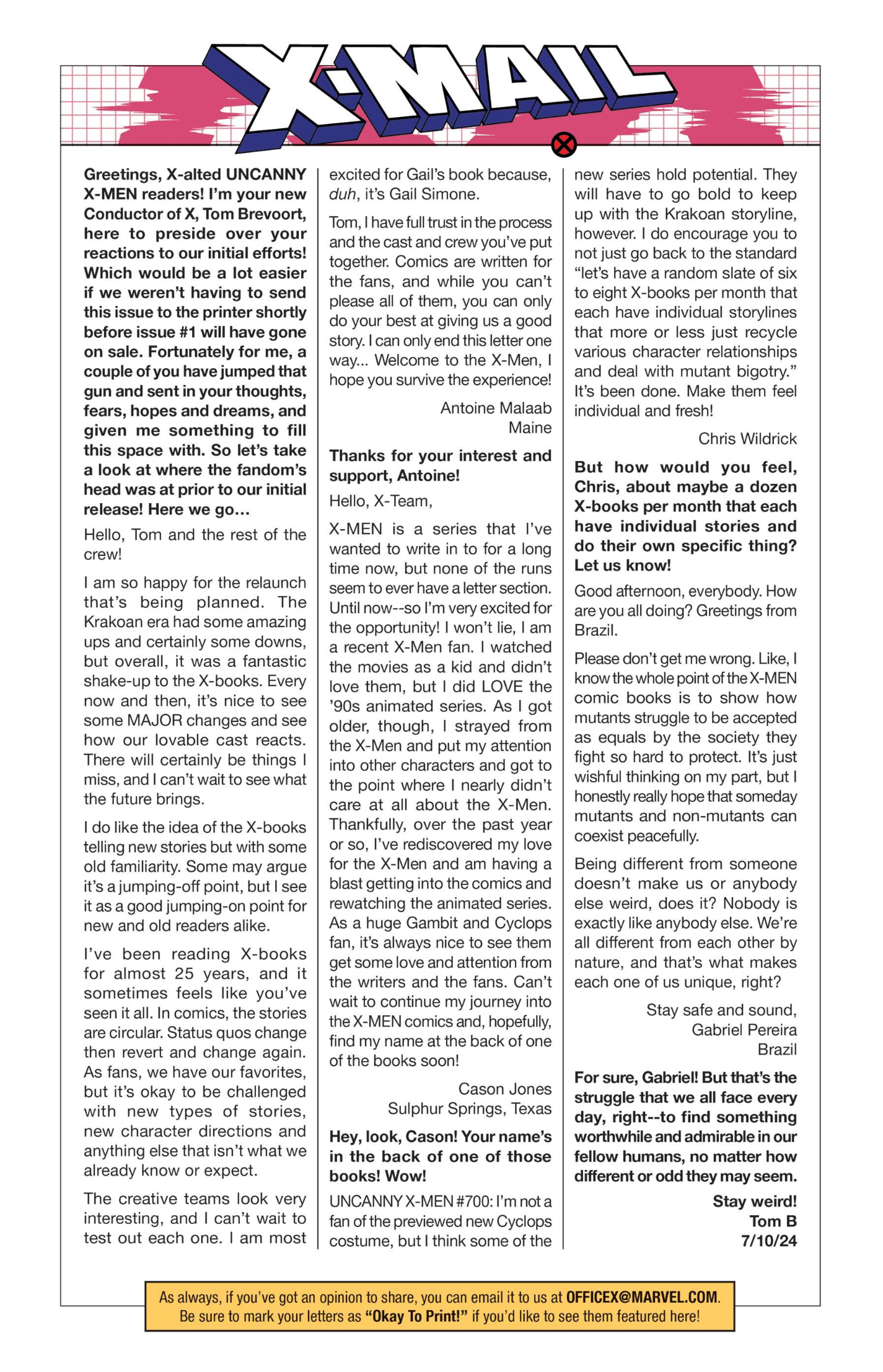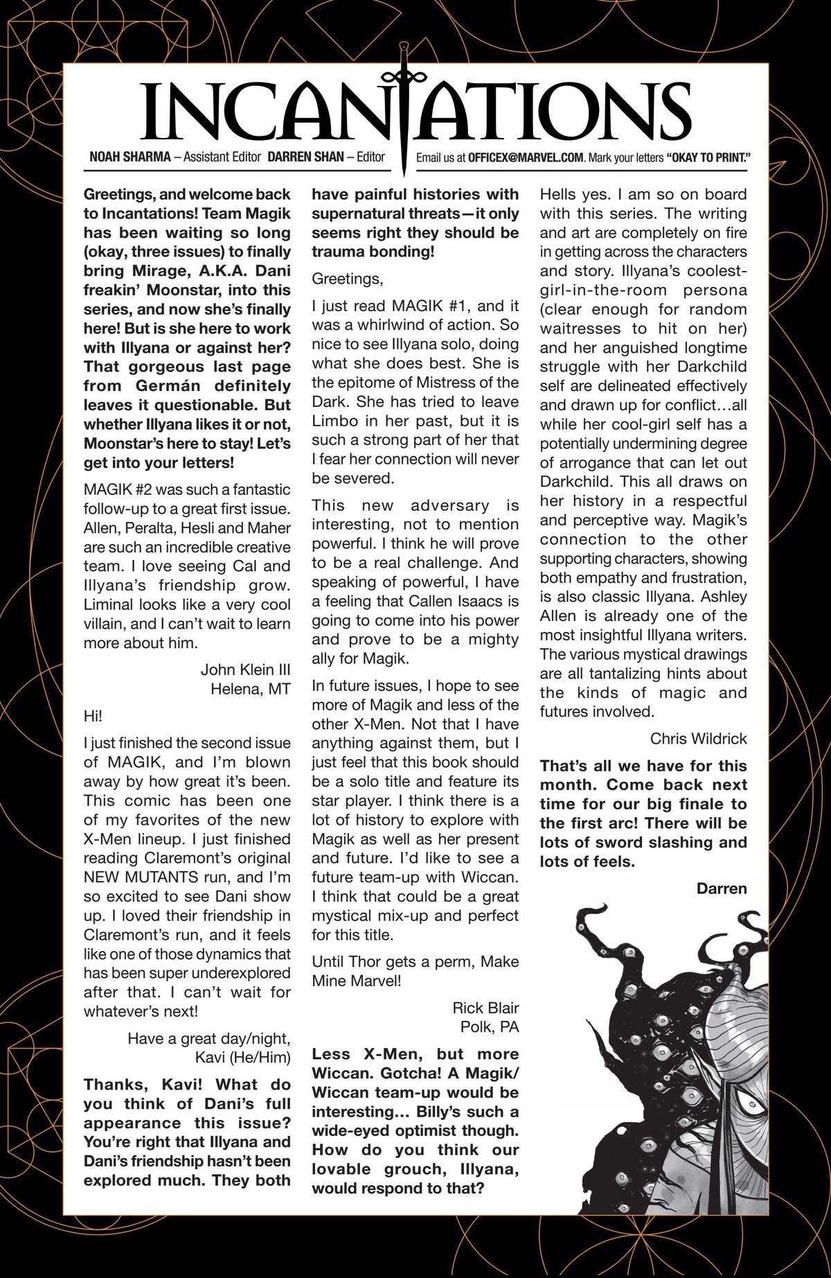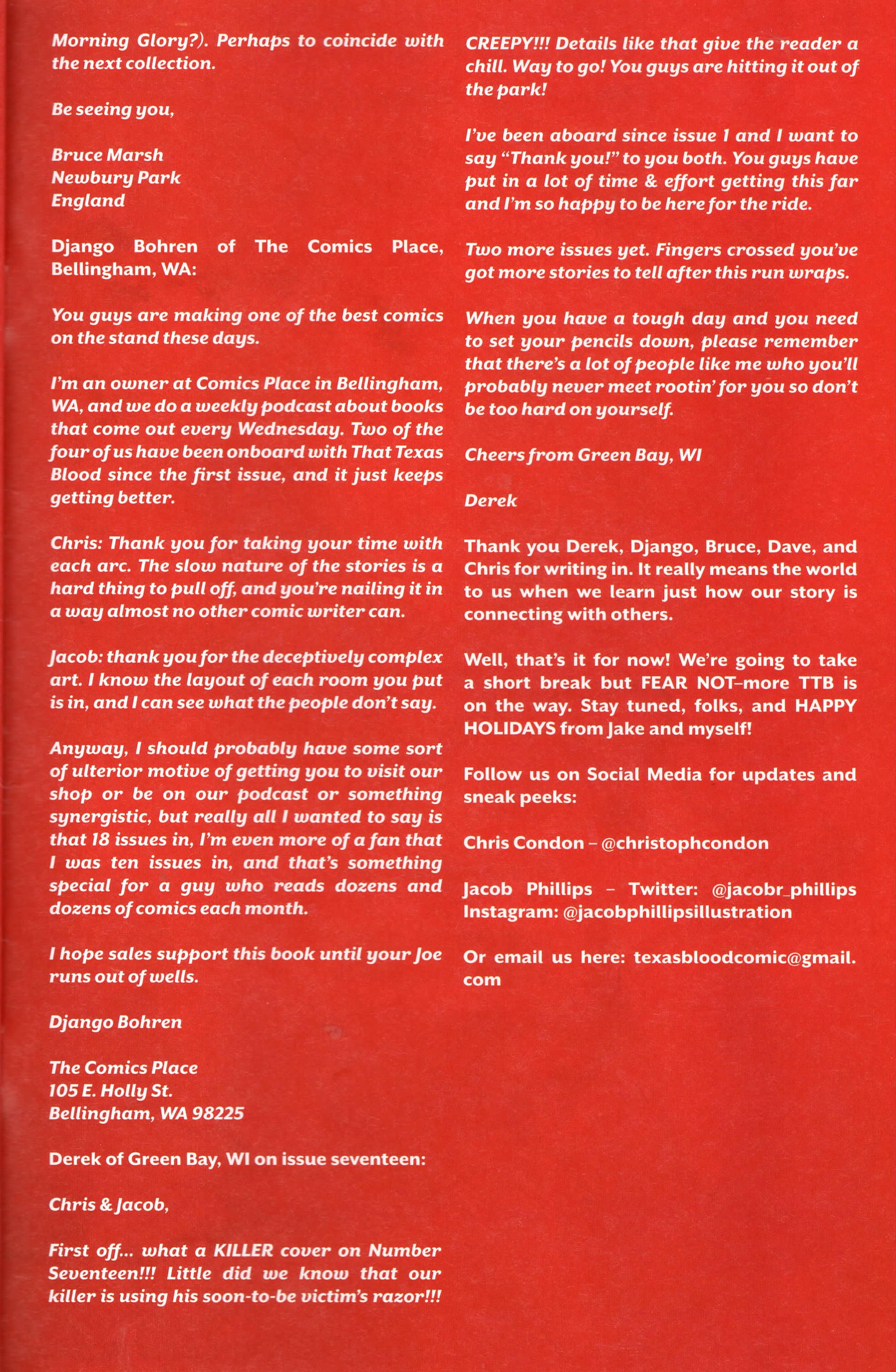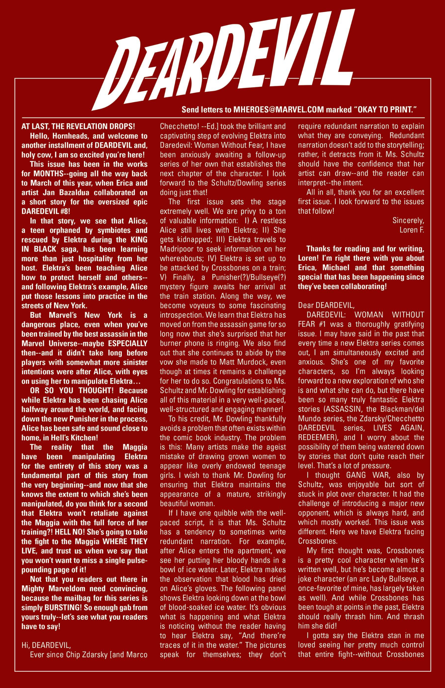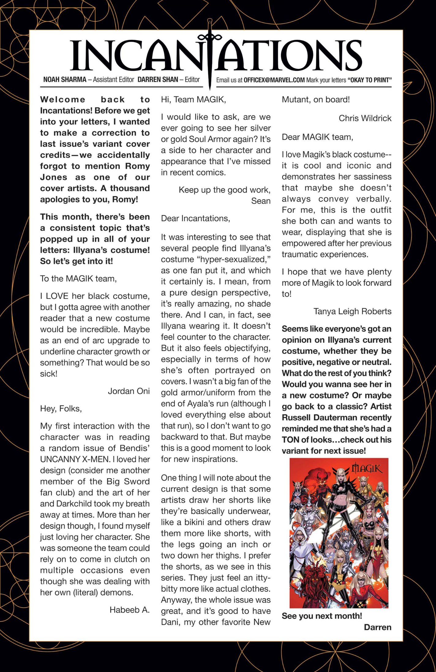 Another non-published letter was due to the timing…in the sense that I wrote it five years too late. In 2024, I wrote to The Wicked + The Divine after reading several issues I found in a dollar bin. The only challenge here is that the series ended in 2019. The WicDiv lettercol was an intrinsic part of the book, with writer Kieron Gillen making various running jokes, such as creating bespoke “ok to print” acknowledgement lines for each issue, and always replying to a prolific letterhack, Cam, with the same friendly “Thanks, Cam” response. I felt like there is no reason a letter column, especially one with an email, should be anchored in time to just when the comic is actually being produced. We still have opinions and responses to comics, no matter how long ago they were published, so I decided to just write in–and I got an almost instant response from Gillen saying, “This was all really touching, Chris. Thanks for doing it.” So props to Kieron Gillen for confirming that lettercols are eternal and atemporal!