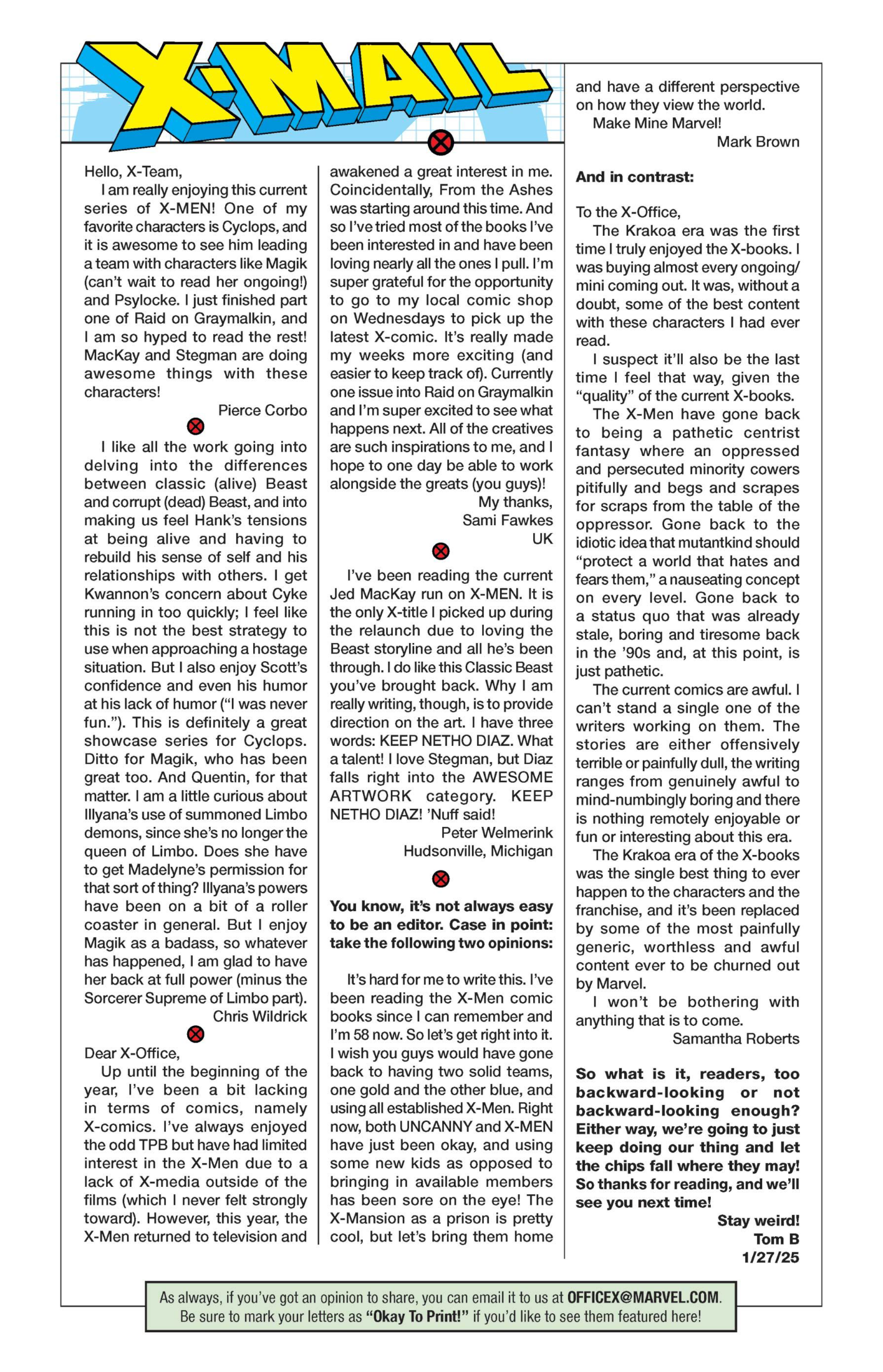 Most of my published letters are in Marvel comics, partly because I get a lot of Marvel comics, but also because they have the most active lettercols. I also make a point of writing to smaller publishers that may get less feedback.
