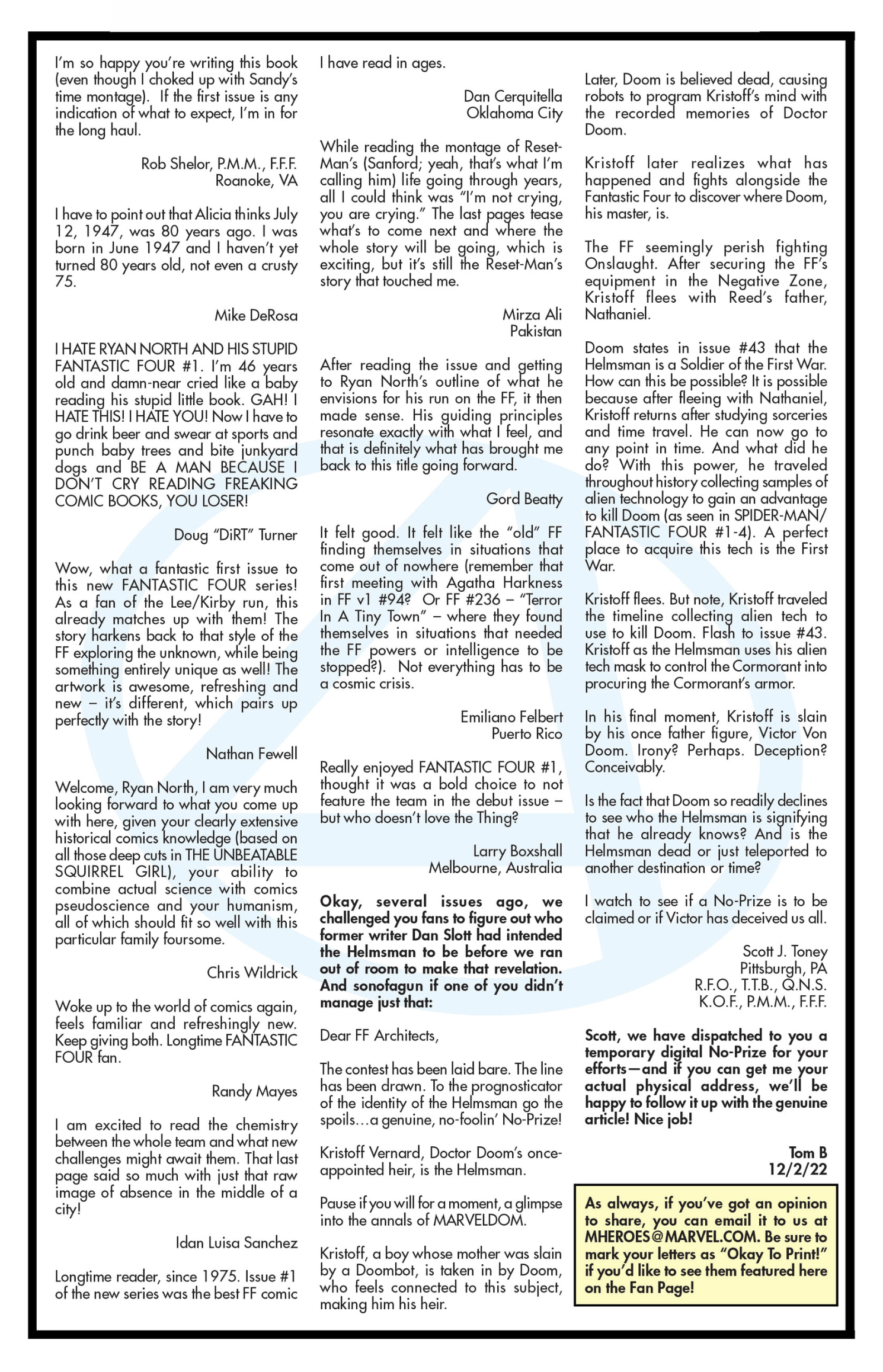 (In the past, a No-Prize was an empty envelope you got in the mail; now it is a JPG of a photo of an empty envelope, thus being even more of a No Prize than before, which is great.)