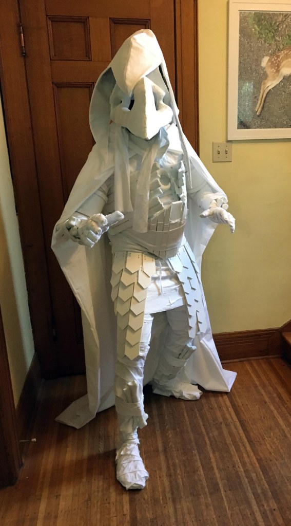 Here’s my version of Moon Knight, wearing his “magic Egyptian armor” as seen in the 2014 volume of Moon Knight, issue 3. I wore it at DragonCon, and then again at New York Comic Con.