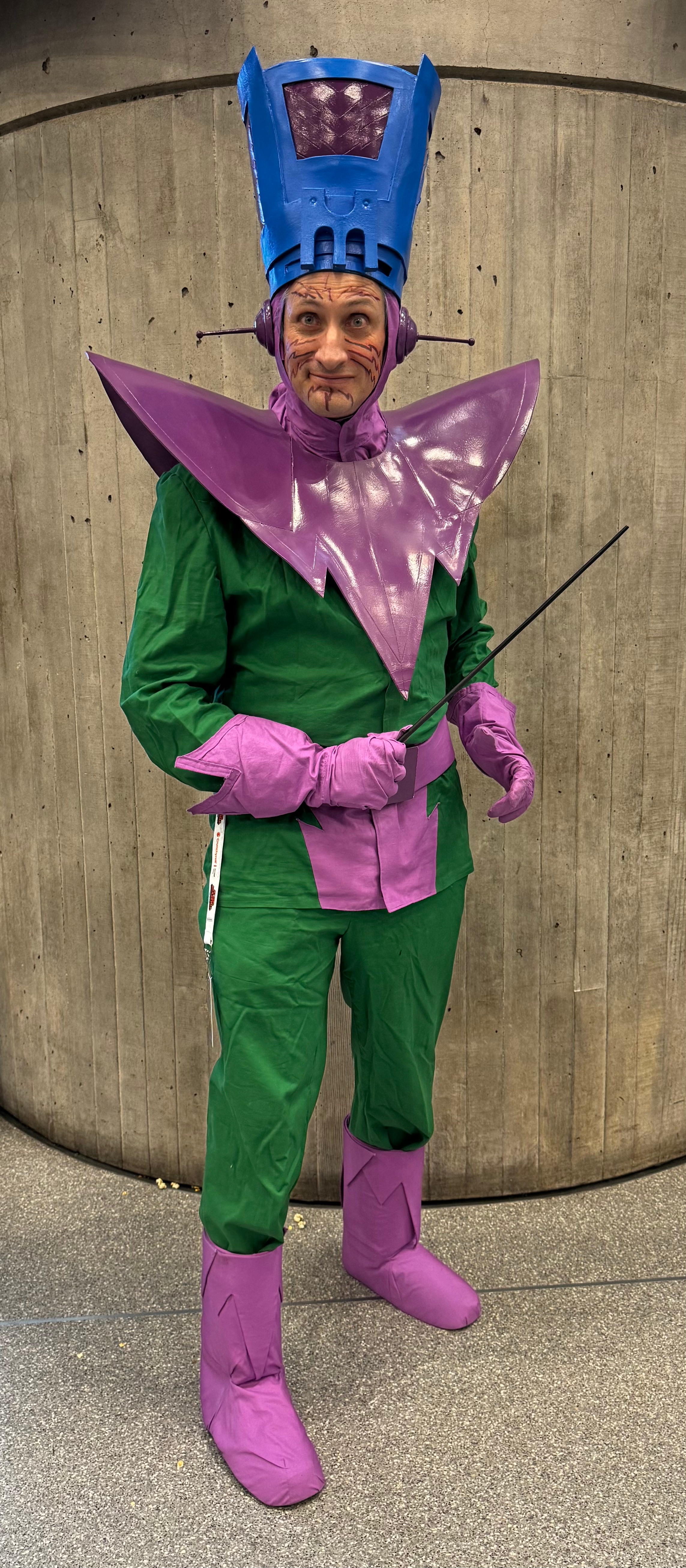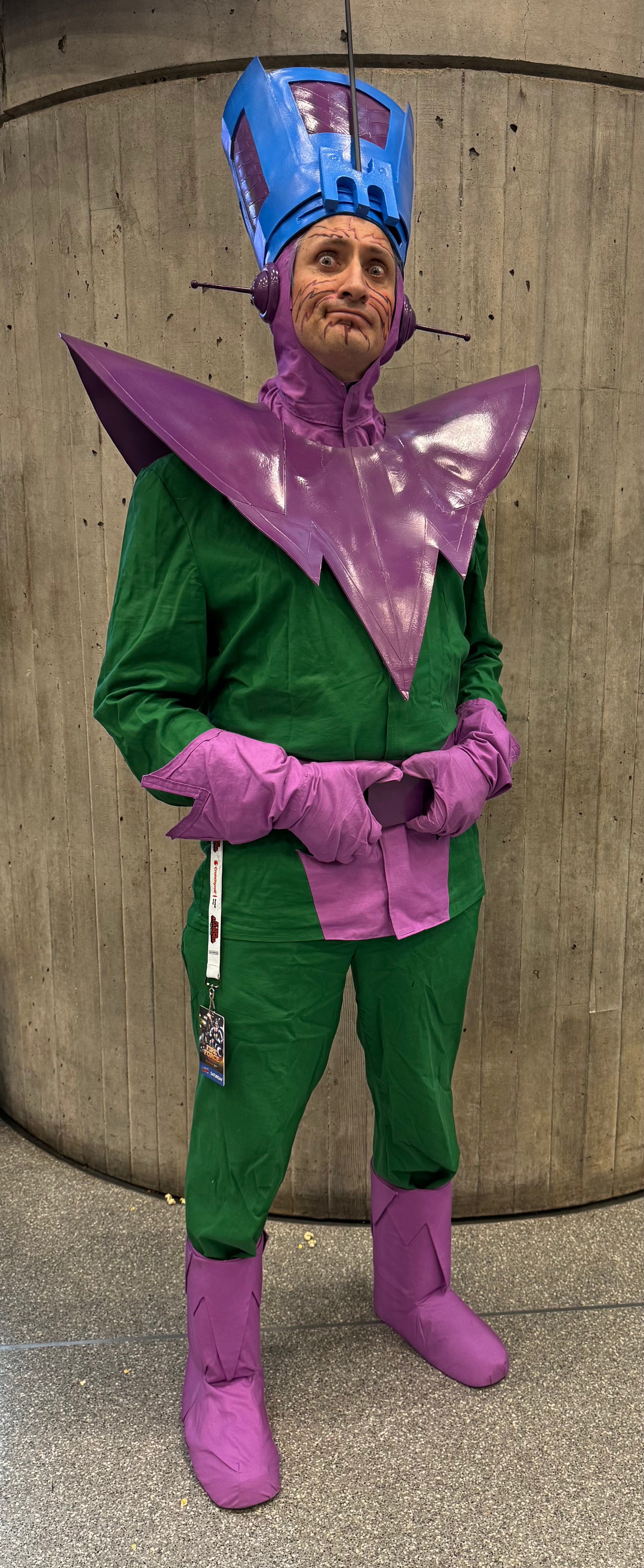 Possibly my most-worn costume, this is the Molecule Man, Owen Reece. Specifically, it is his costume from Avengers 215-216, where he created a costume for himself that intentionally looked a bit like Galactus’s costume. I chose this particular costume because it’s Reece’s best hat.