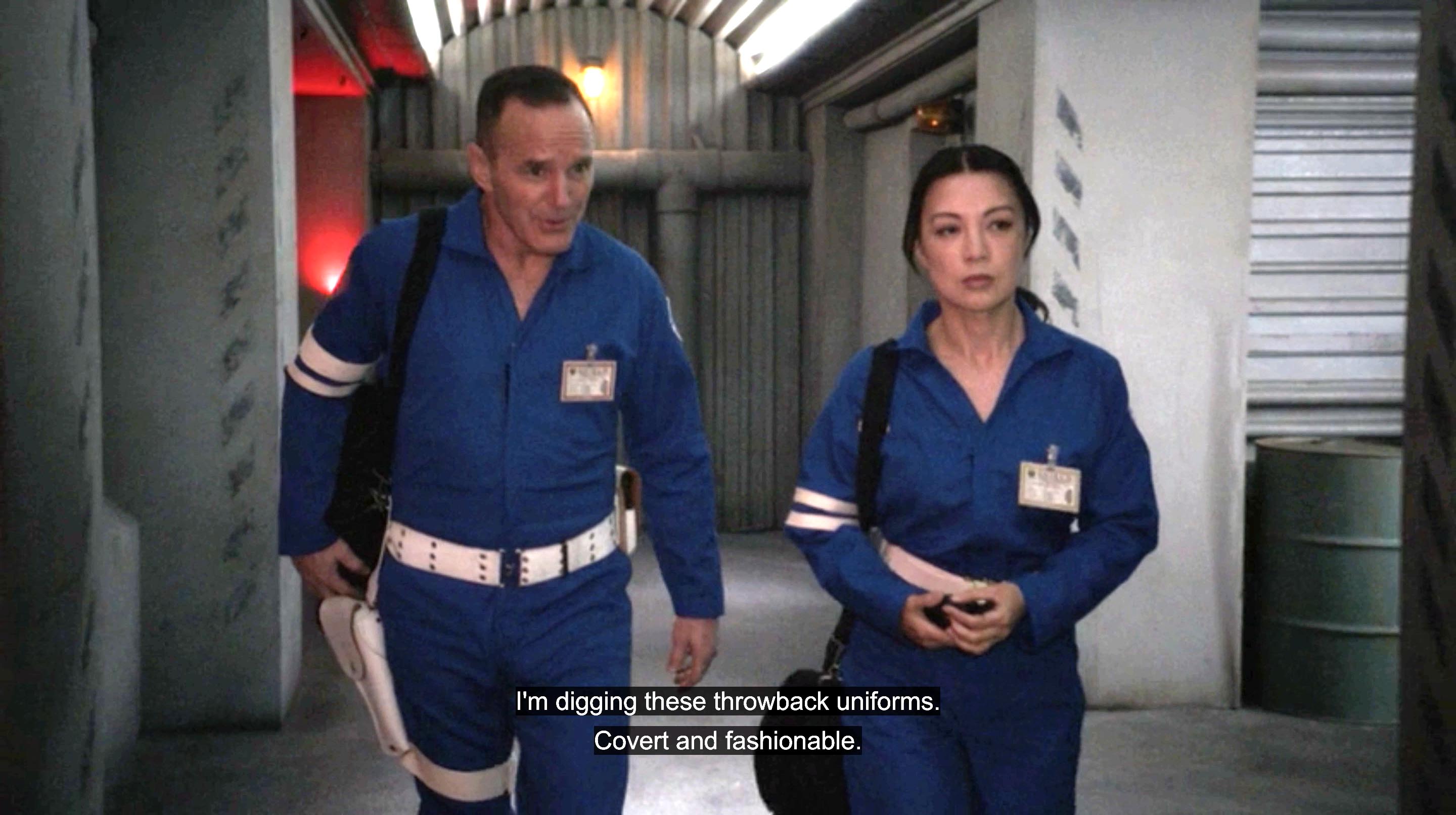All these cosplays seem like they need to start with a long explanation…ok, so in the last season of Agents of S.H.I.E.L.D., Phil Coulson (technically, an L.M.D of him, I guess) and the other members of his team do a lot of time traveling. In the episodes “A Trout in the Milk” and “Adapt or Die” they visit the year 1976. Coulson and Melinda May need to infiltrate the S.H.I.E.L.D. Lighthouse base of the era, so they knock out some agents and put on their uniforms.