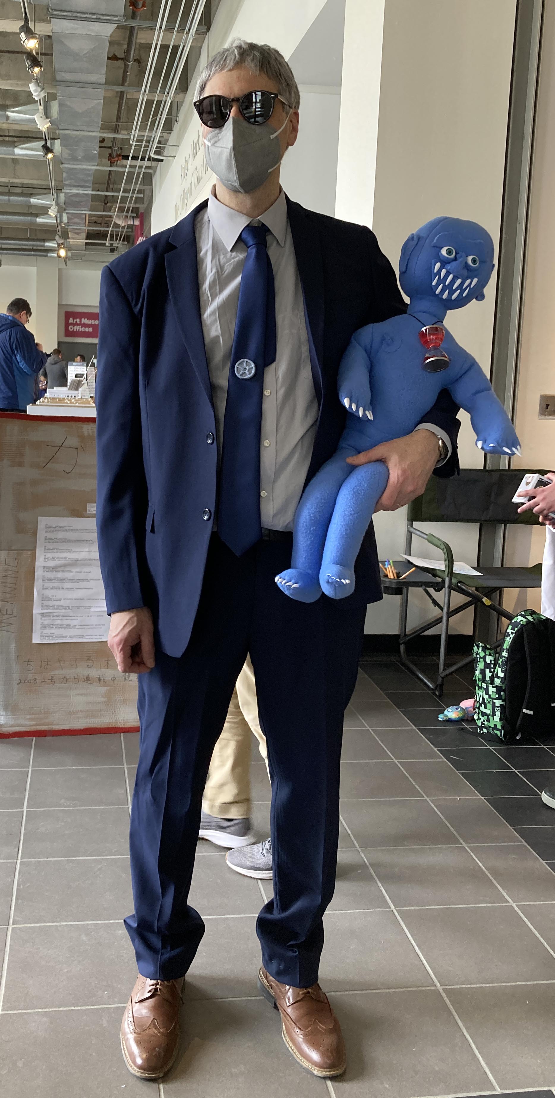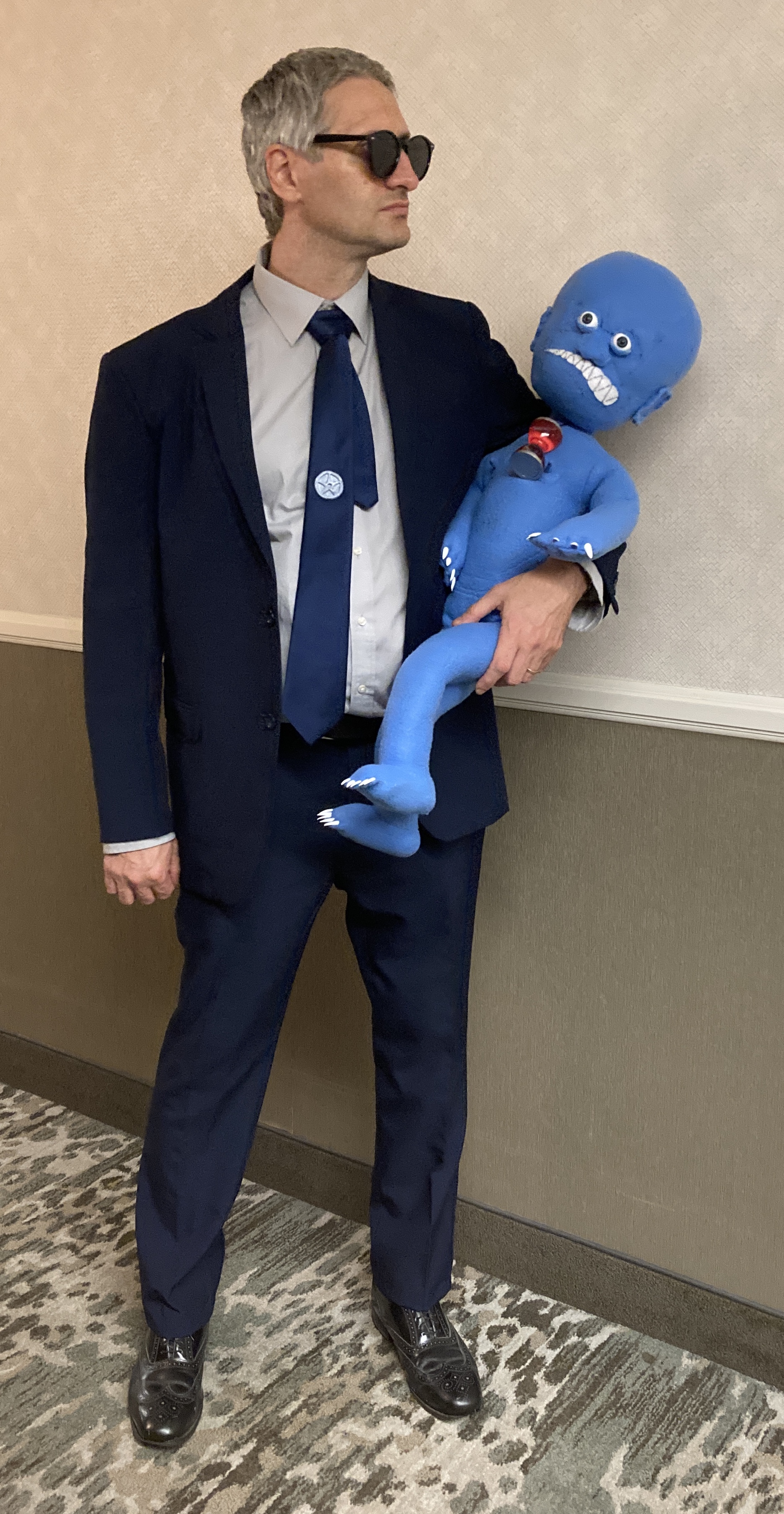 Anyway–this cosplay is Sir Timothy Hunter and his demon Barbatos. Barbatos is the first three-dimensional object I’ve ever sewn. I liked the first version of his head but remade it to look more like him. The images at the top, where Barbatos has more of a scowl than a grin, are the new version.