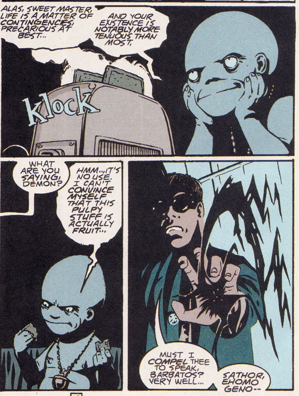 Later on, Young Tim gets involved in a really complicated situation with Barbatos. Young Tim’s soul ends up in Barbatos’s body, which Tim then turns into the shape of his own body. Young Tim’s body is still around without a soul–it is this body that eventually grows up to become Sir Timothy. So the story of Sir Timothy, who definitely comes off as a major creep originally, is really a tragedy, a body destined to live without a soul but ends up overcoming that limitation and redeeming himself.