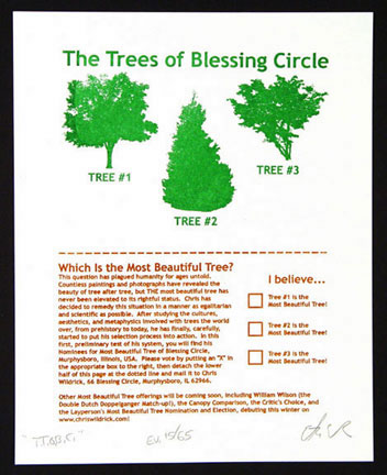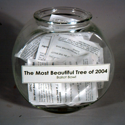 I ran a contest to determine the most beautiful tree each year for several years. I would nominate a number of trees, and anyone could vote for the winner. Many remarked on what they thought was the strange coincidence that almost all of the nominees came from near where I lived or traveled that year, and thought the most beautiful trees in the world might come from a wider geographic range. All I can say is, I had no power over the selection of the nominees, they nominated themselves.
