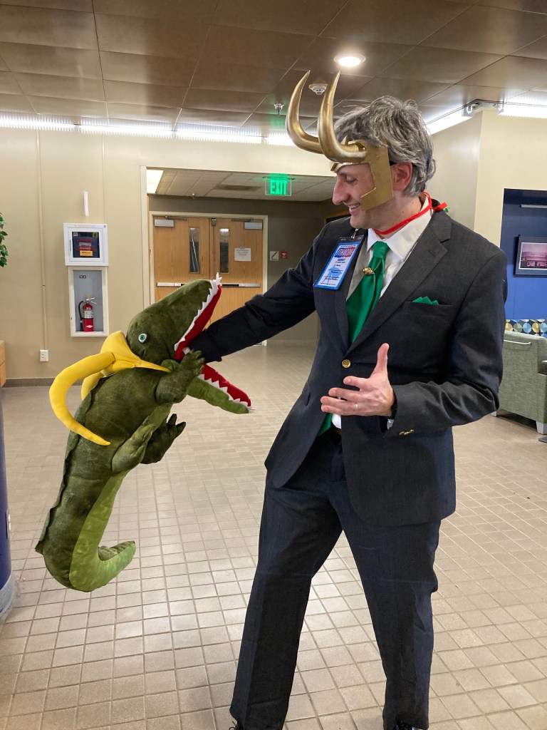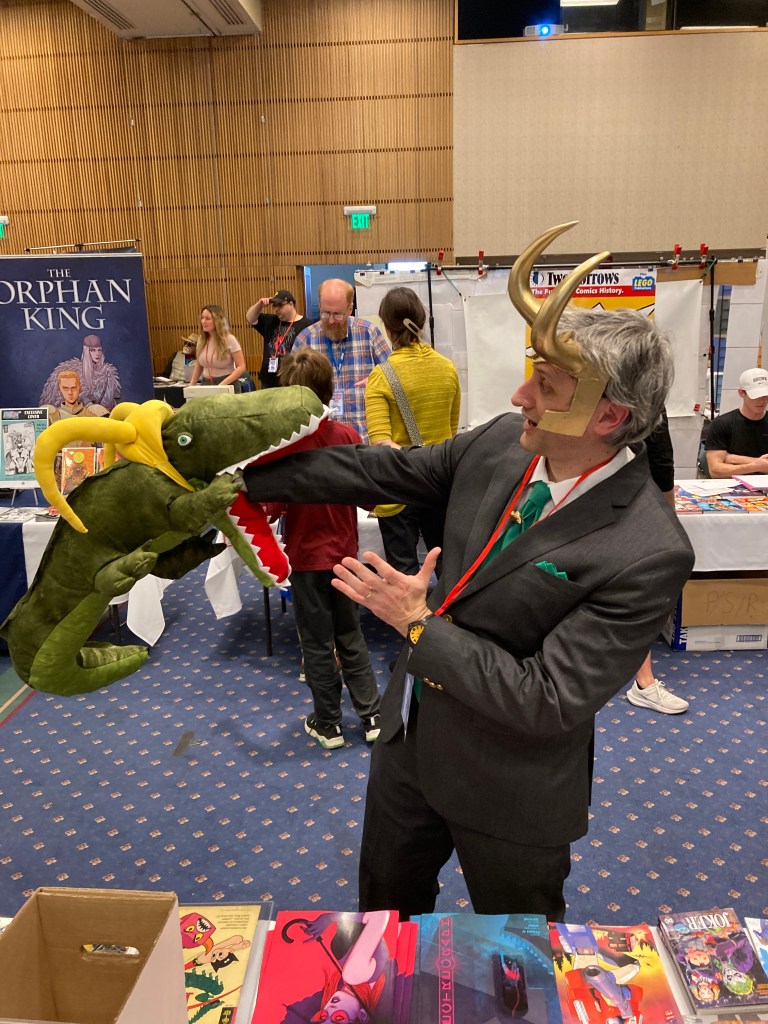 In addition to standard Suit Loki, we also have “Old Man” Loki (with grey hair) and Alligator Loki from the MCU. Old Man Loki is my imagined version of Suit Loki but from the far future, along the lines of the comics version of King Loki (whose hair we never see out of his cowl) or perhaps from the Old Man Logan timeline. This version of Alligator Loki is from the MCU, where he bit off the hand of MCU President Loki. However, my Suit Loki is the comics version from Vote Loki, not the MCU President Loki, so one must imagine that Alligator Loki wants to bite the hand that feeds him regardless of comics/MCU provenance.